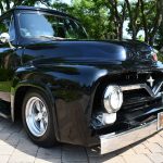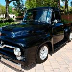 The 1955 Ford F100, a timeless emblem of American automotive heritage, brings together power, style, and meticulous restoration to create a masterpiece that stands as a tribute to an era of innovation and craftsmanship. With its unique attributes and meticulous attention to detail, this classic truck is a testament to a time when vehicles were more than machines—they were works of art. Beneath the hood, the 1955 F100 houses a robust 5.7-liter (350 cubic-inch) V8 engine that personifies the truck’s dual identity as a powerhouse and a versatile workhorse. The 350c.i. V8 engine embodies the F100’s commitment to both high-performance capabilities and utilitarian functionality. It delivers an impressive blend of torque and horsepower, offering both thrilling acceleration and the capacity to take on a multitude of tasks. Partnered with the engine is a Turbo 400 automatic transmission, thoughtfully chosen to enhance the driving experience and complement the V8’s prowess. The Turbo 400 transmission enhances gear shifts, ensuring seamless transitions and a refined ride. Whether embarking on a leisurely drive or navigating through urban environments, the F100 delivers an exceptional balance of power and comfort. The exterior of the 1955 Ford F100 commands attention with its striking black finish adorned by custom flames. These artistic flames, meticulously handcrafted, transform the truck into a moving canvas, embodying the spirit of personalization that was celebrated in this era. The custom flames add a touch of sophistication to the classic design, infusing the truck with a unique personality that captures the essence of individual expression. As you step inside, the black interior envelopes you in an atmosphere that marries practicality with a touch of elegance. The black color scheme extends seamlessly from the seats to the dashboard, creating an interior that caters to the driver’s experience. The meticulous attention to detail throughout the cabin reflects the dedication to restoration and craftsmanship, resulting in an interior that resonates with both authenticity and sophistication. Boasting a mere 75 miles on the odometer, this F100 proudly showcases its meticulous restoration and limited usage. The incredibly low mileage stands as a testament to the care and reverence invested in preserving its original charm. The 1955 Ford F100 embodies an era when vehicles were more than mere transportation; they were symbols of innovation and individuality. Its 5.7L V8 engine, Turbo 400 transmission, black exterior with custom flames, and black interior, all meticulously restored, encapsulate a time when automotive design was an art form. As you grasp the steering wheel and experience the authority of the V8, you’re not just driving; you’re immersing yourself in the history of a classic truck that’s been revitalized to inspire admiration and reverence for generations to come.